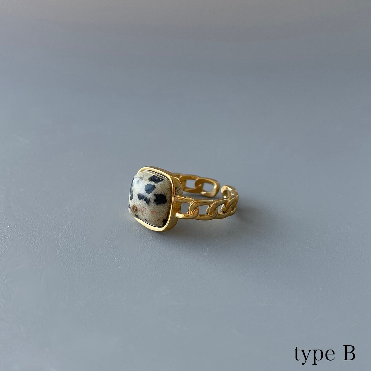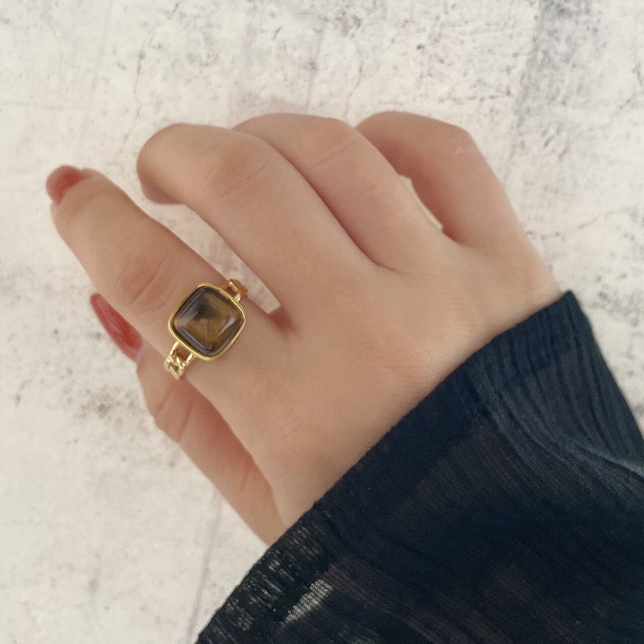 ぐっとシックなお色目のストーンをあしらったリングです。